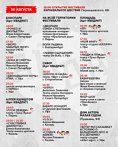 Уфимцы и гости города смогут увидеть как масштабные постановки, так и камерные моноспектакли, познакомиться с экспериментальными формами современного театра.