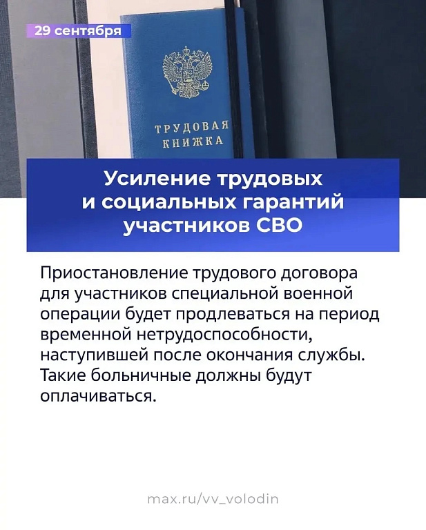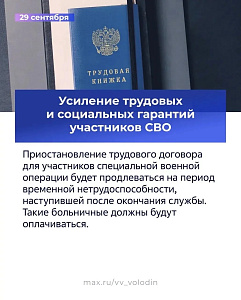 Усиление трудовых и социальных гарантий участников СВО
