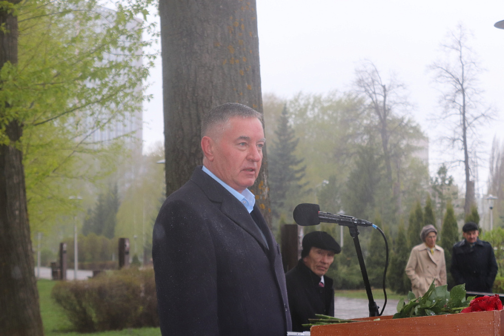 Собравшиеся почтили память погибших минутой молчания и возложили цветы к памятнику. От имени главы городского округа, председателя Горсовета Уфы Марата Васимова к участникам митинга обратился Эдуард Остапчук.