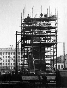 Однако, в течение семи лет на площади, которая тогда называлась Комсомольской стоял другой памятник Ленину. Он был меньшим по размеру и выполнен из гранита. Автор – Сергей Меркуров. Возможно, первый вариант памятника посчитали скромным для такого большого пространства. К тому же, в 1967 по всему СССР широко праздновалось 50-летие Октябрьской революции и городу нужна была более величественная скульптура.