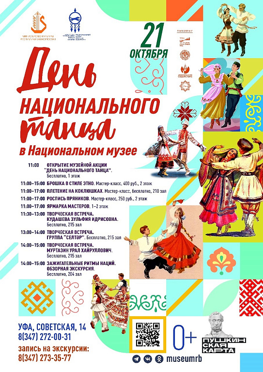К празднику присоединится и Национальный музей Республики Башкортостан, где пройдет масштабная акция «День национального танца». Для посетителей подготовлены ярмарка ремесленников, мастер-классы по декоративно-прикладному творчеству, встречи с известными артистами и тематическая экскурсия «Зажигательные ритмы наций». Программа мероприятий в музее продлится до 17:00.