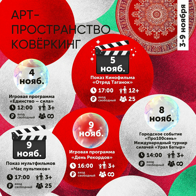 16:00 – игровая программа «День Рекордов» на площадке арт-пространства «Коверкинг»;