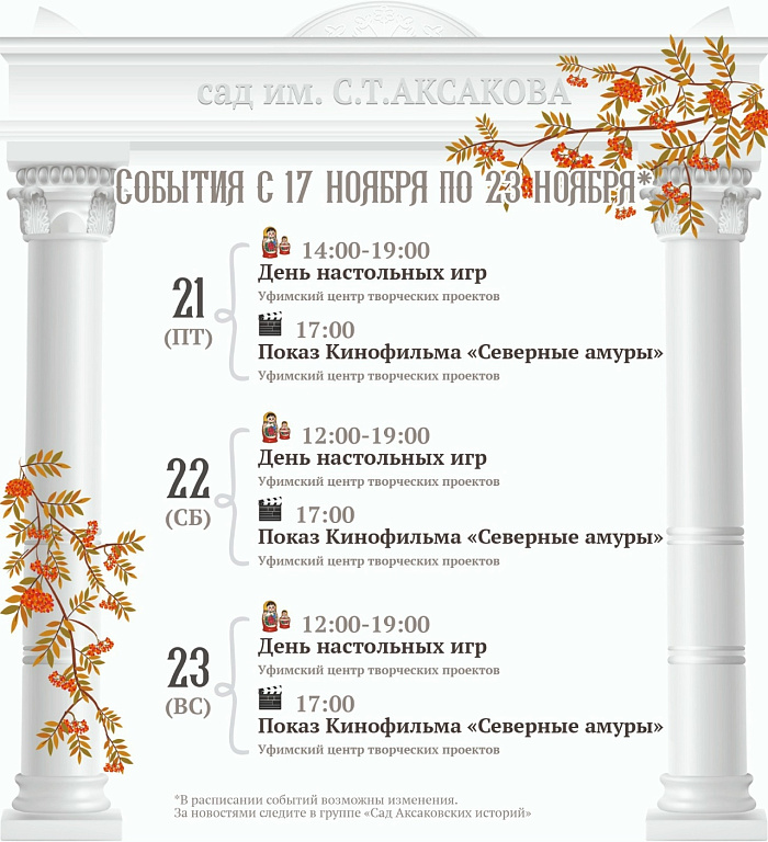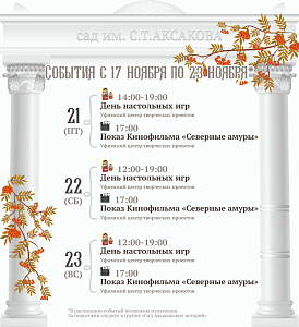 Мероприятия могут быть отменены или перенесены. Следить за обновлениями можно в группе «Сад Аксаковских историй».