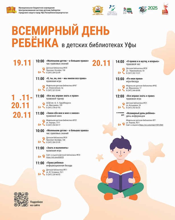 19 и 20 ноября пройдут мероприятия, приуроченные к Всемирному дню ребенка. Для юных читателей подготовлены тематические беседы, игровые программы и познавательные уроки.