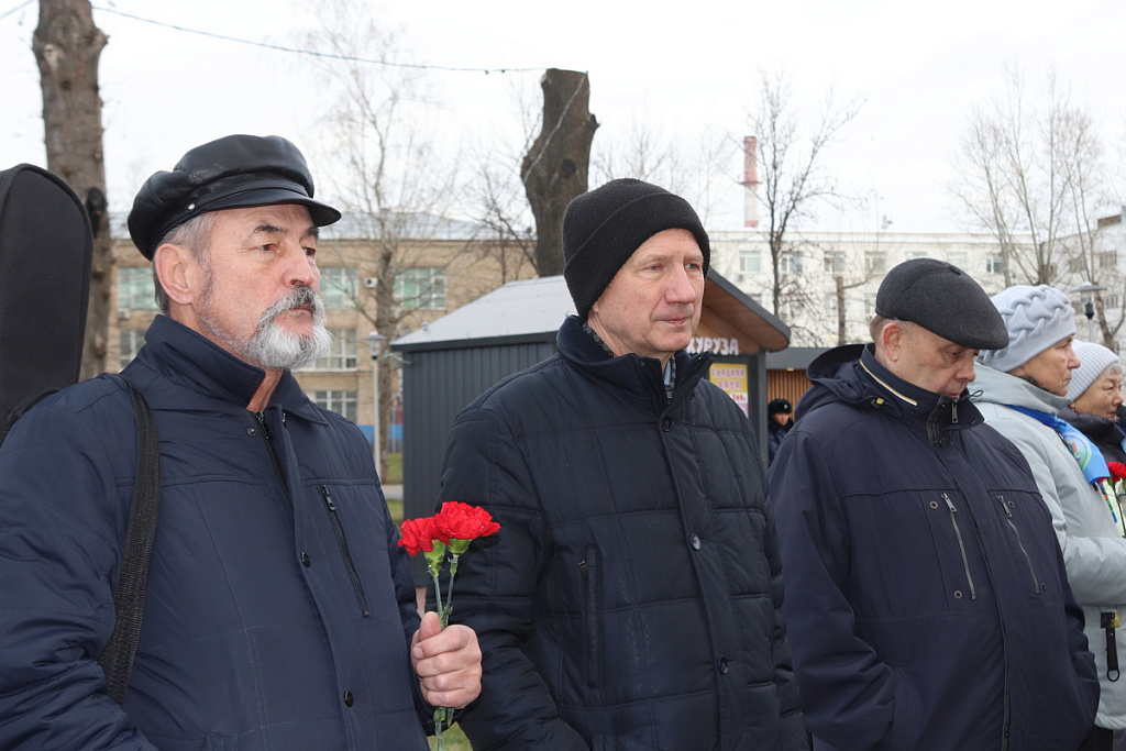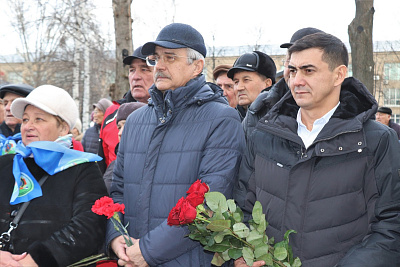 Собравшиеся почтили память погибших минутой молчания и возложили цветы к памятнику.