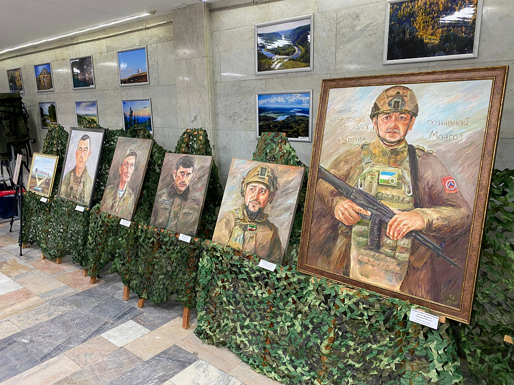 В фойе Дворца культуры развернулась тематическая экспозиция. Духовой оркестр исполнил мелодии фронтовых лет, художник Альберт Еникеев представил работы, посвященные участникам специальной военной операции.