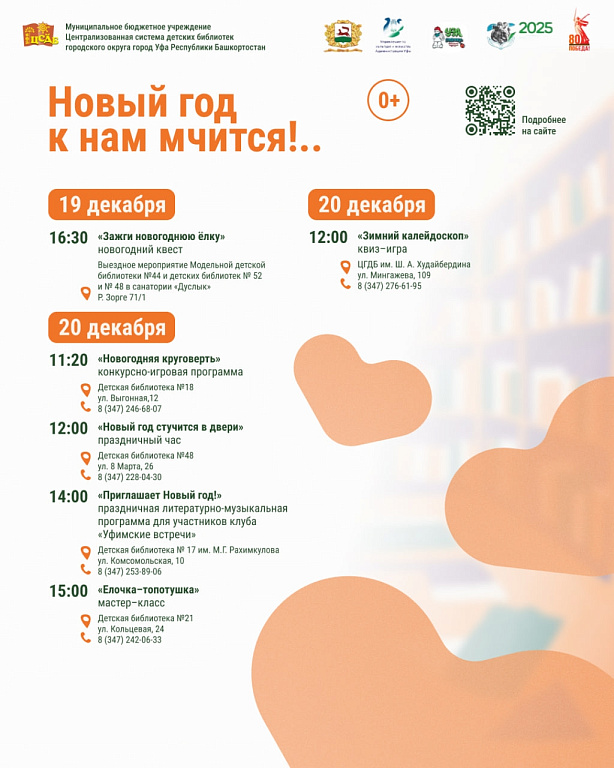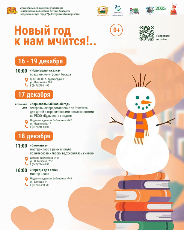 В преддверии Нового года городские библиотеки Уфы приглашают детей и их родителей провести время в теплой и творческой атмосфере. С 16 по 20 декабря для юных читателей подготовлена серия праздничных мероприятий.