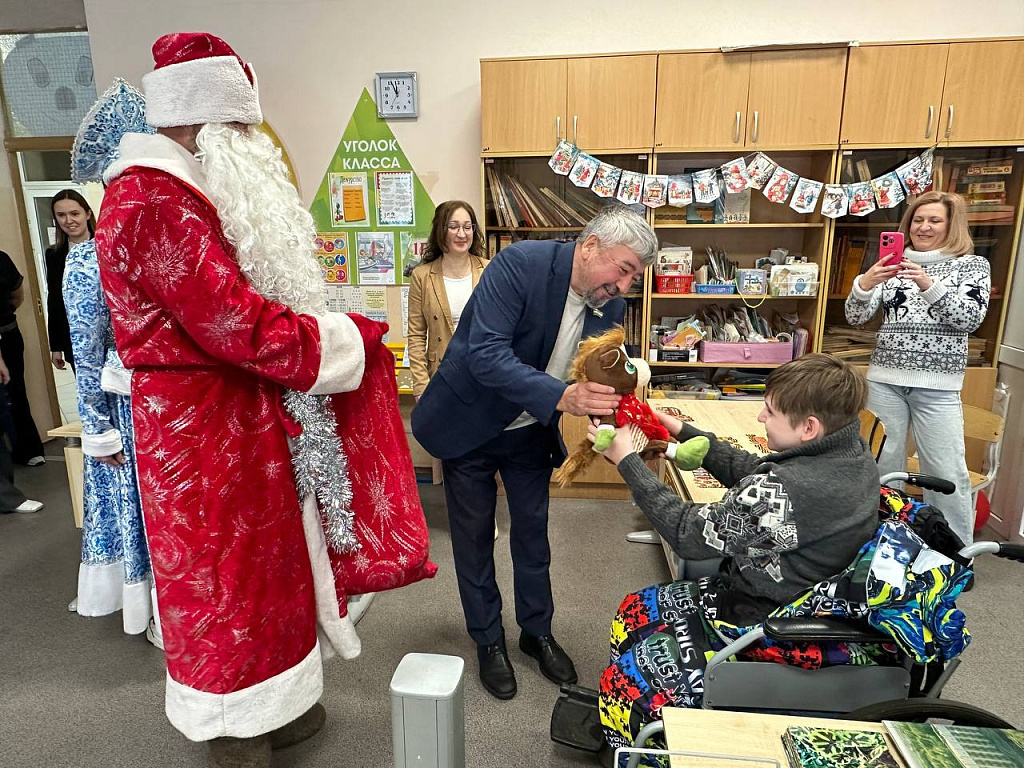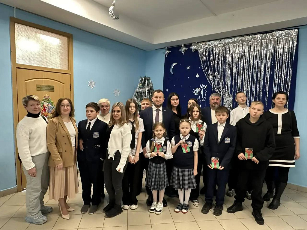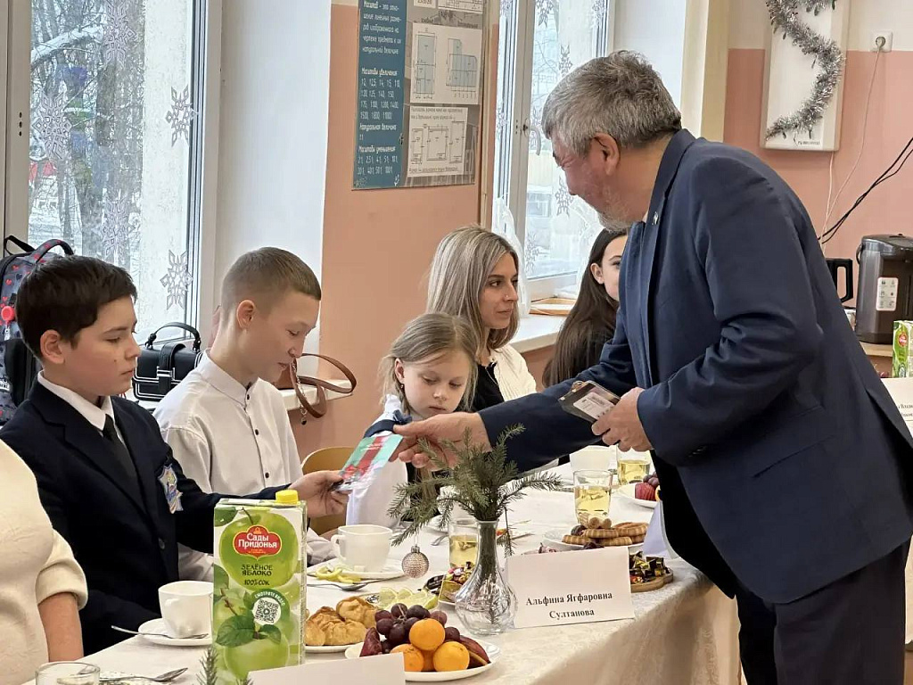 Объезд района начался со школы № 103. Здесь прошла встреча с семьями участников специальной военной операции. В мероприятии также участвовала председатель Общественного Совета района Ирина Марченко. Марат Васимов и Иван Иванов поздравили детей бойцов с наступающим Новым годом и вручили подарки.